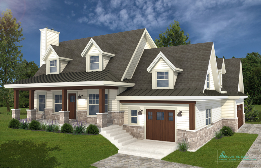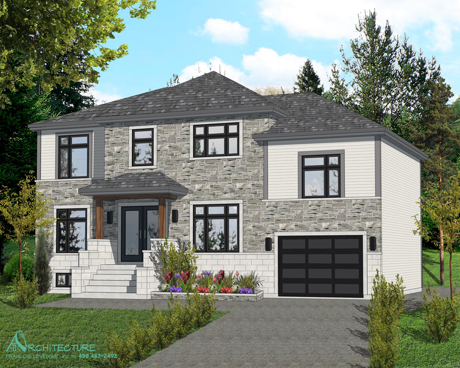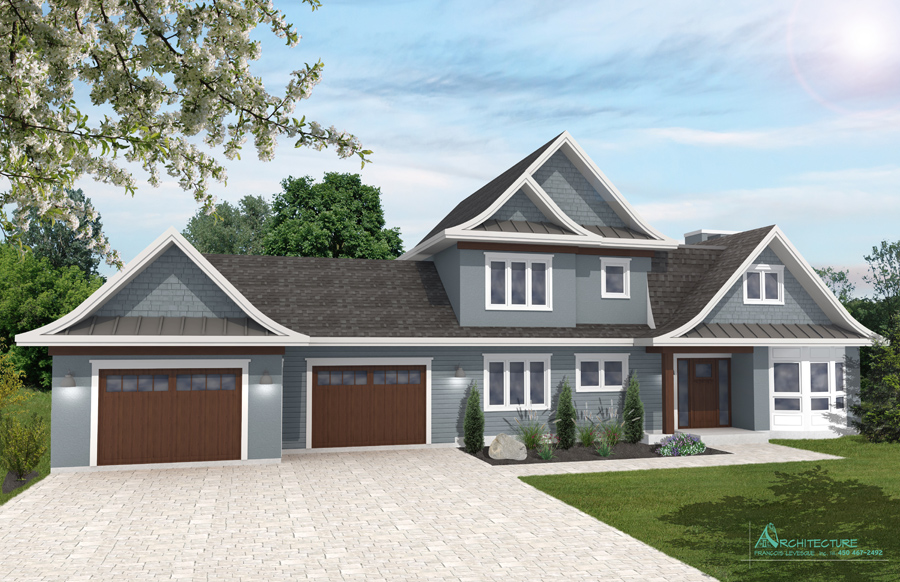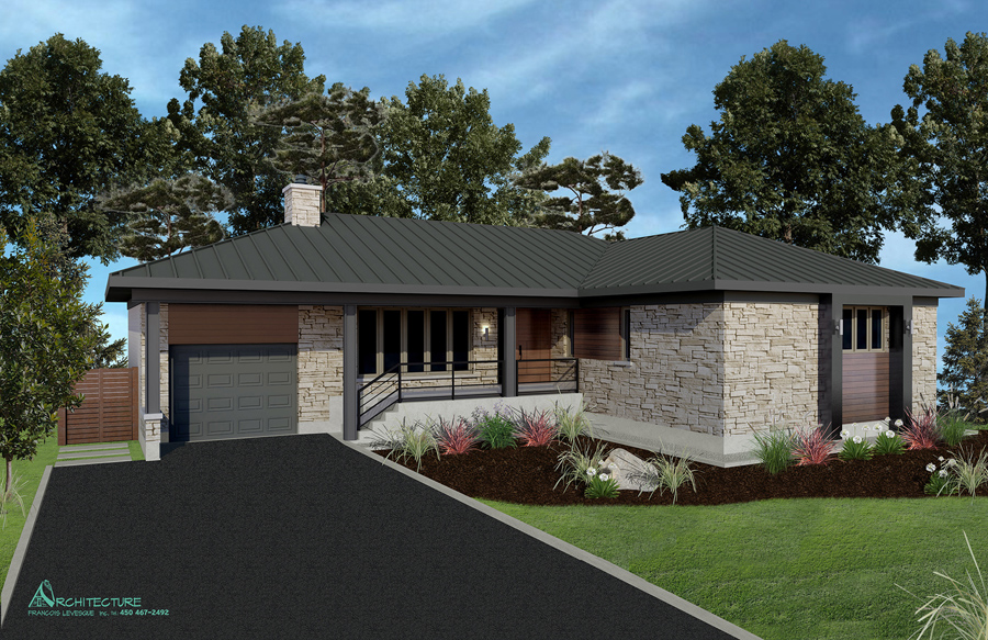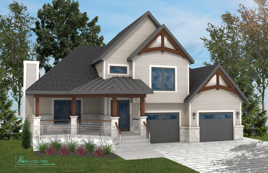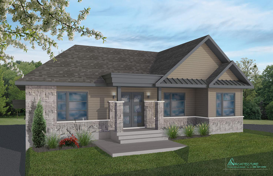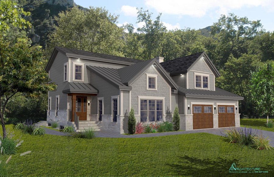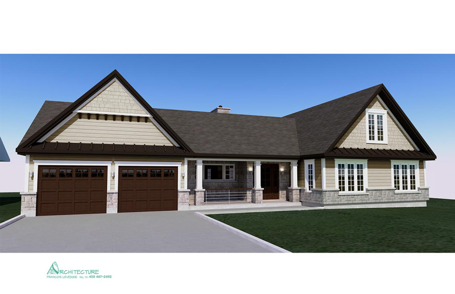 • Vue des élévations à l'échelle avec l'étude des choix des revêtements extérieursv  • Plan de construction :